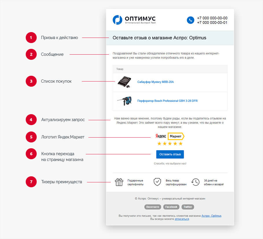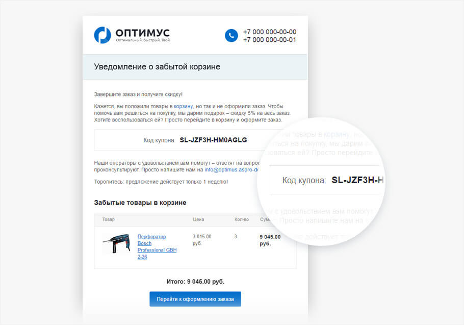 Let's take a look at how trigger emails might look like using Aspro: Market and Aspro: Optimus templates. Using their example, we will analyze popular chains and find out what increase in sales and conversion they can give.